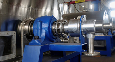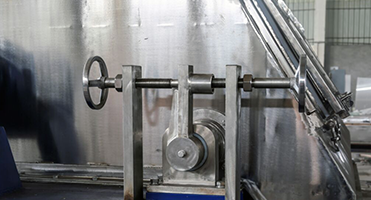 Drum flaker is a kind of rotating continuous drying equpment with internal heating and conducting. Certain thickness of materials film attaches the drum from materials tank at the under the bottom. Heat is transferred to the internal wall of the drum through pipes and then to the external wall and conduct to the materials film. So that it evaporates the moisture in the materials film so as to dry the materials. Dried products are scrapped off the drum by the blade fixed on the surface of the drum, then fall down to the spiral conveyor under the blade. The conveyor collects the products and output them.